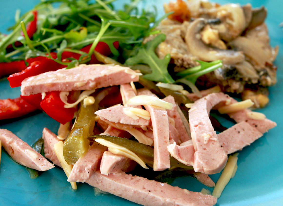 Leberkäse zubereitet. Eine schärfere Variante könnte mit Jalapeno