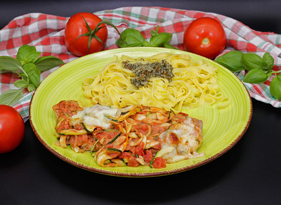 Zucchini-Schinken-Lasagne mit Mozzarella und Frischkäse